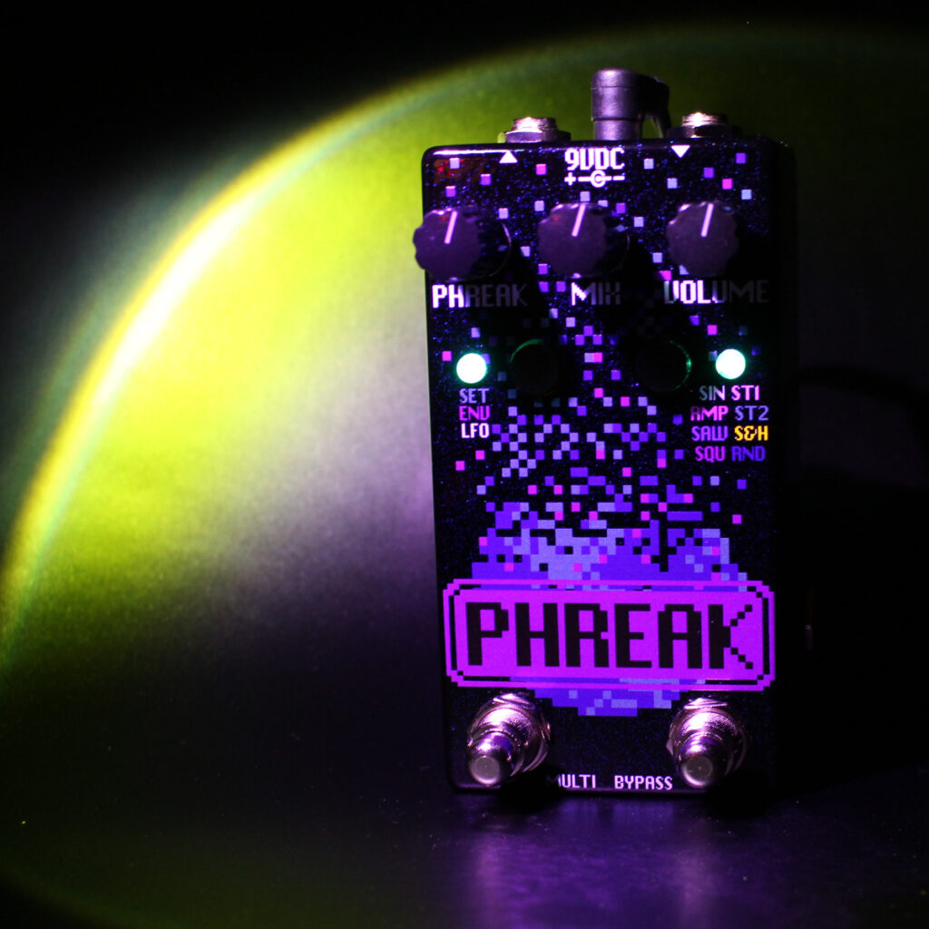 Phreak is a digitally controlled ring modulator. At its heart is an FV-1 DSP engine delivering crisp ring modulator tones. The digital side brings a whole bunch of convenient and powerful features like controlling the ring modulator frequency, tap tempo, MIDI, 8 LFOs, a tunable ring modulator, 7 optional DSP ring mod effects and a path to strange new ring modulator sounds.